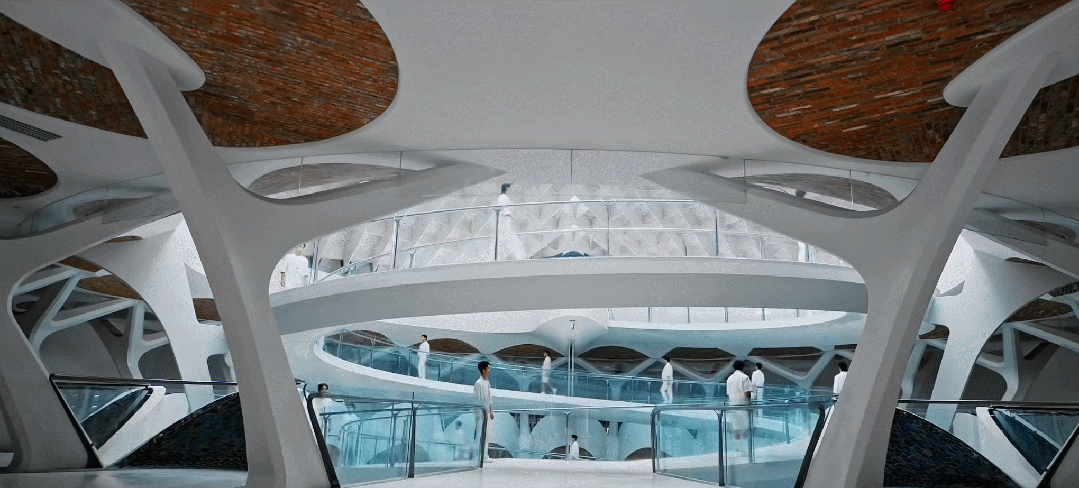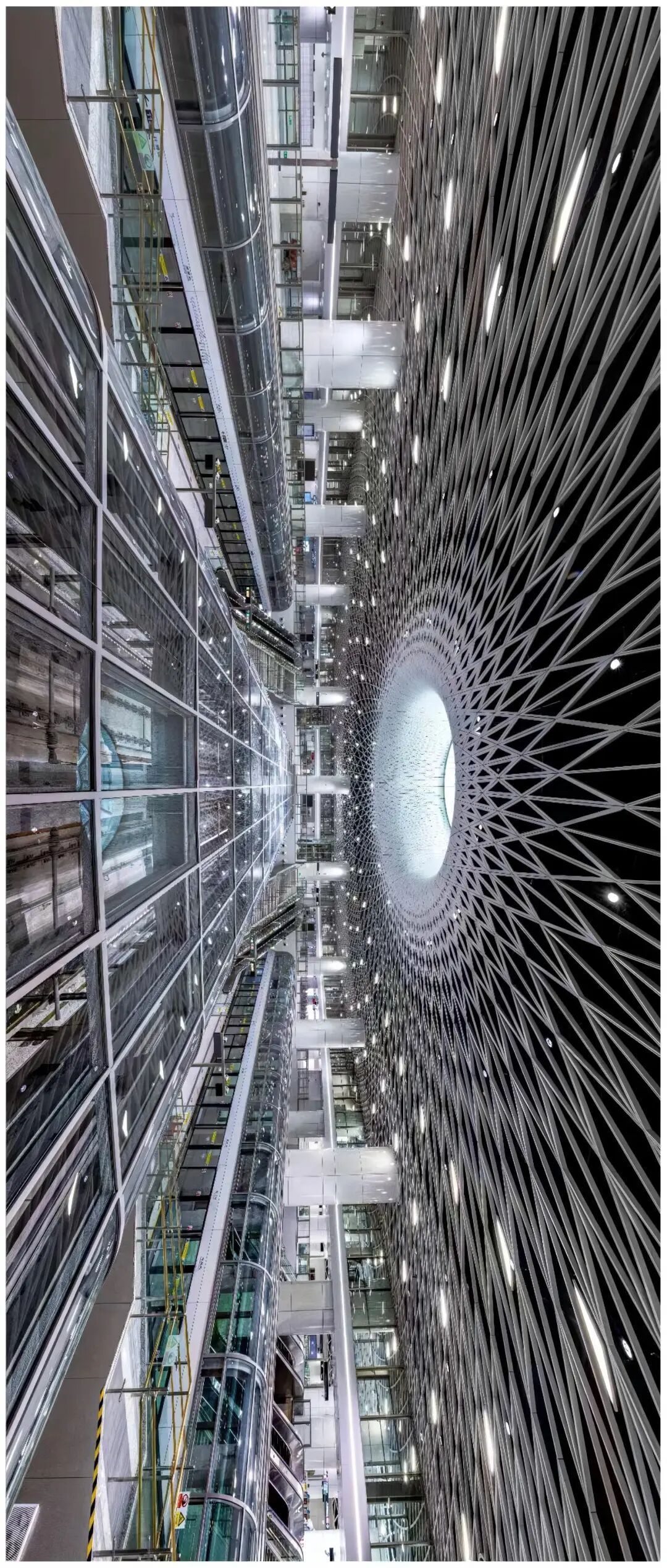 岗厦北以“深圳之眼”为主题,以中枢天井为基点,引入费马螺旋线双向延迟,体现了深圳“集合、包容、国际化”的文化特征。