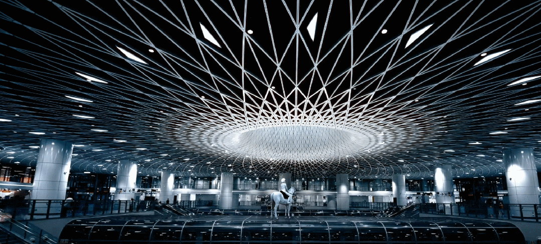 步入岗厦北站,举目就能看到好多个透光的当然天井。白昼阳光会透过天井映射在地铁各处,让通盘这个词空间显得非常通透亮堂。