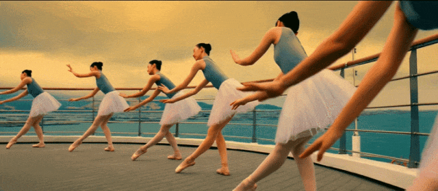 在“大湾区二号”游轮的船面上,舞者以碧波为幕,以海风为伴奏,翩然起舞。