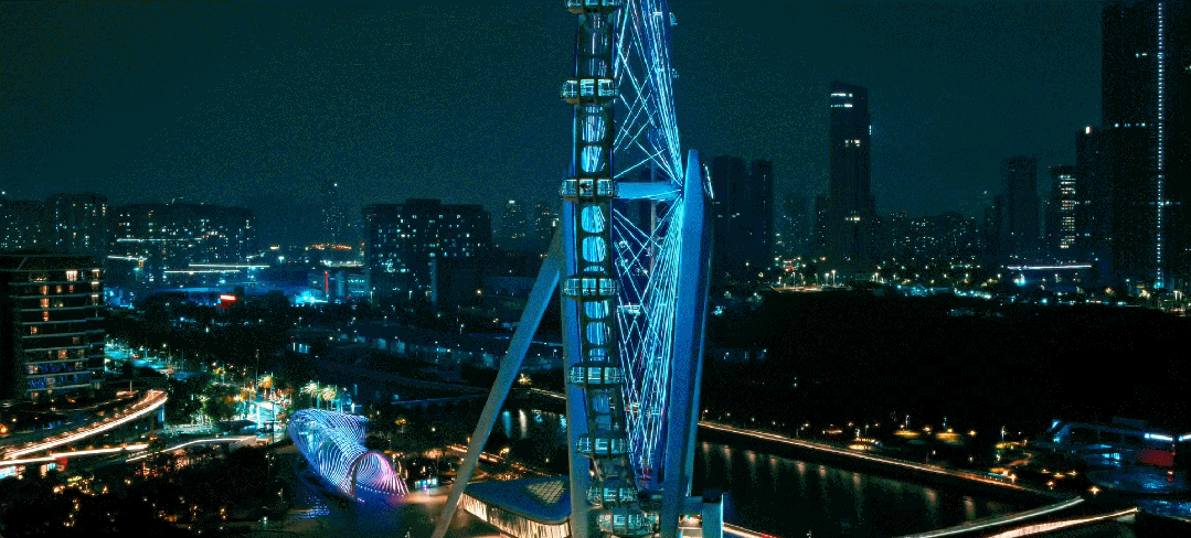 作为湾区神圣地标,“湾区之光”摩天轮在《奇境》中精通夜空。